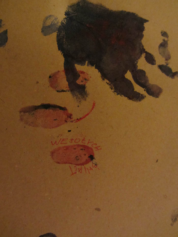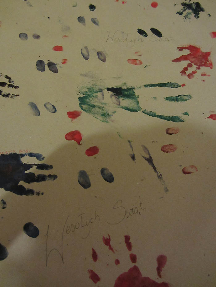 Dla zainteresowanych – malowaliśmy akwarelami, chociaż myślę, że następnym razem użyjemy plakatówek. Dodatkowa uwaga – dużo łatwiej pomalować rączki farbami w tubce niż farbami w słoiczku.