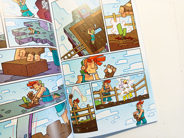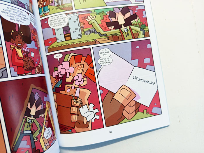 Jak w większości publikacji osadzonych w świecie Minecrafta, pojawiają się tu sceny walk oraz pokonywania wrogich mobów, czyli fantastycznych stworzeń zamieszkujących ten uniwersum. Dla osób wrażliwych na motywy przemocy może to być minus, choć warto zaznaczyć, że nie ma jej wiele i nie jest przedstawiona w drastyczny sposób.